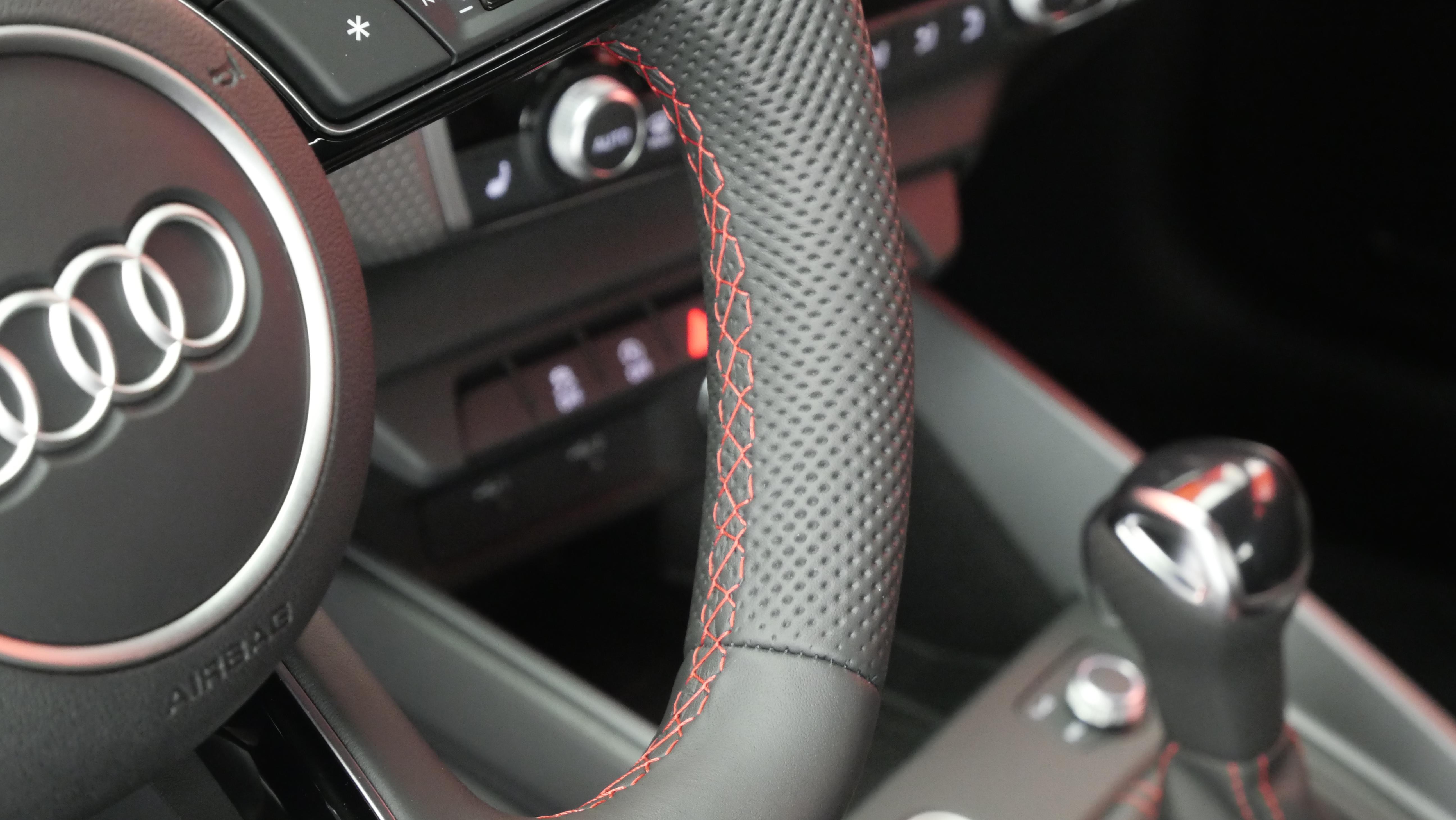 • Style aluminium à l'intérieur Bouton de réglage des rétroviseurs, lève-vitres, caches des diffuseurs, bouton pression du frein à main, cache de la prise 12 volts ainsi que l’encadrement du combiné d’instruments numérique ou de l’Audi virtual cockpit en Aluminium Argent mat