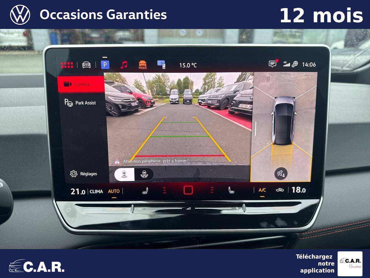 • Front Assist - Système de surveillance périmétrique avec fonctions de freinage d'urgence en ville et détection des piétons