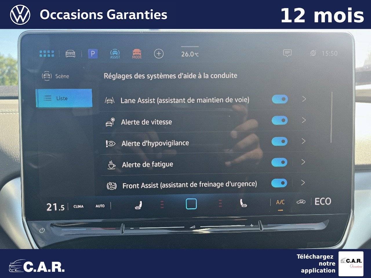 • Front Assist - Système de surveillance périmétrique avec fonctions de freinage d'urgence en ville et détection des piétons
