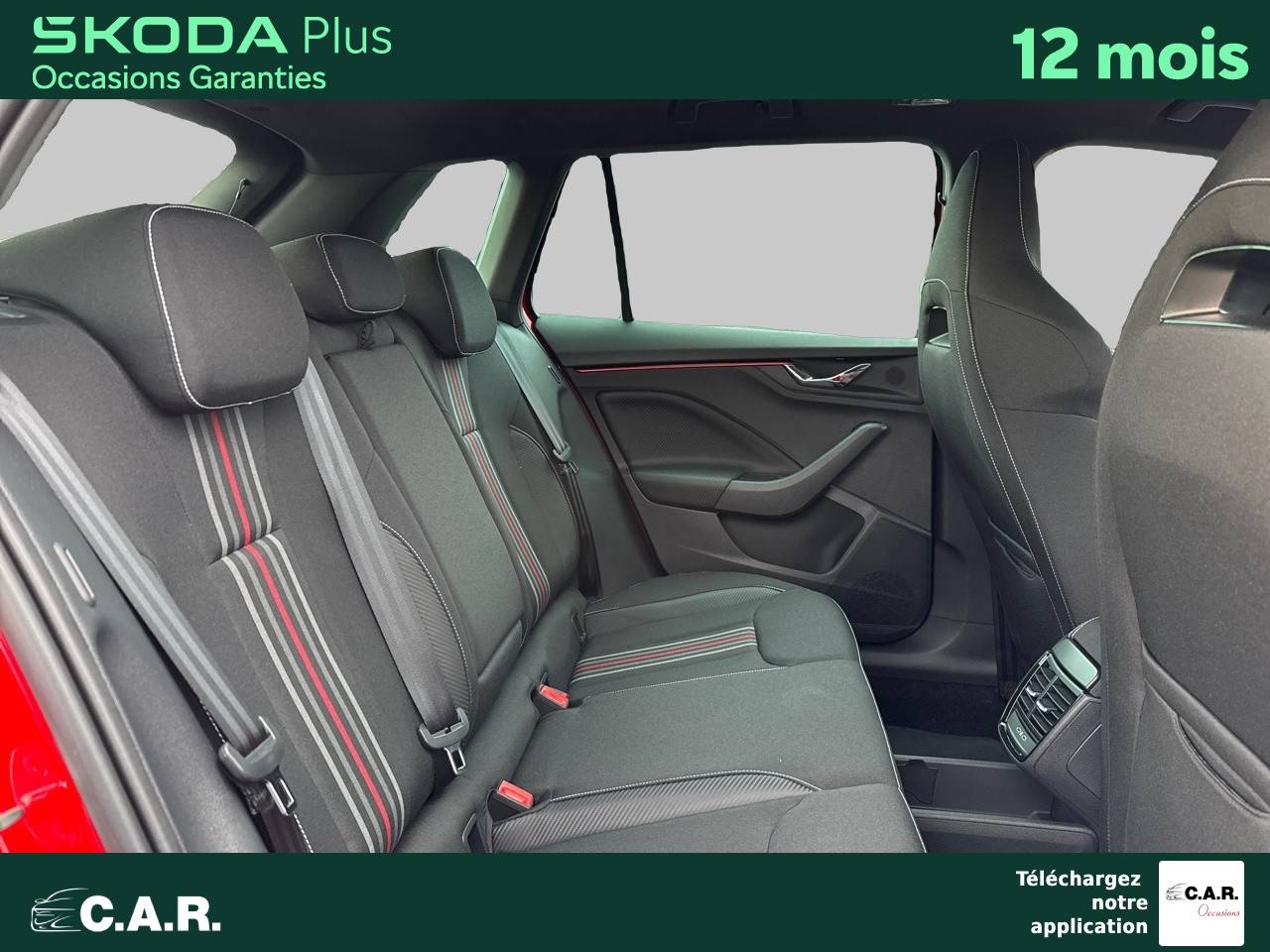 • Insert décoratif sur la planche de bord effet Carbone avec liseré rouge et inserts de porte matériau synthétique effet carbone
