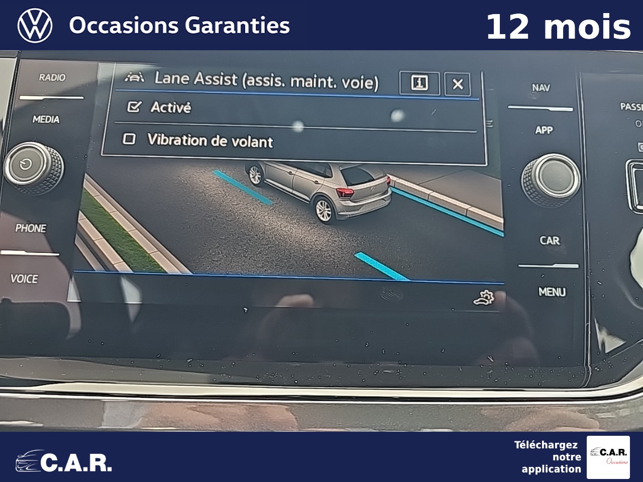 • Lane Assist: assistant de maintien dans la voie qui corrige, dans la limite du système, le mouvement du volant AV que le véhicule dépasse involontairement la bande de roulement