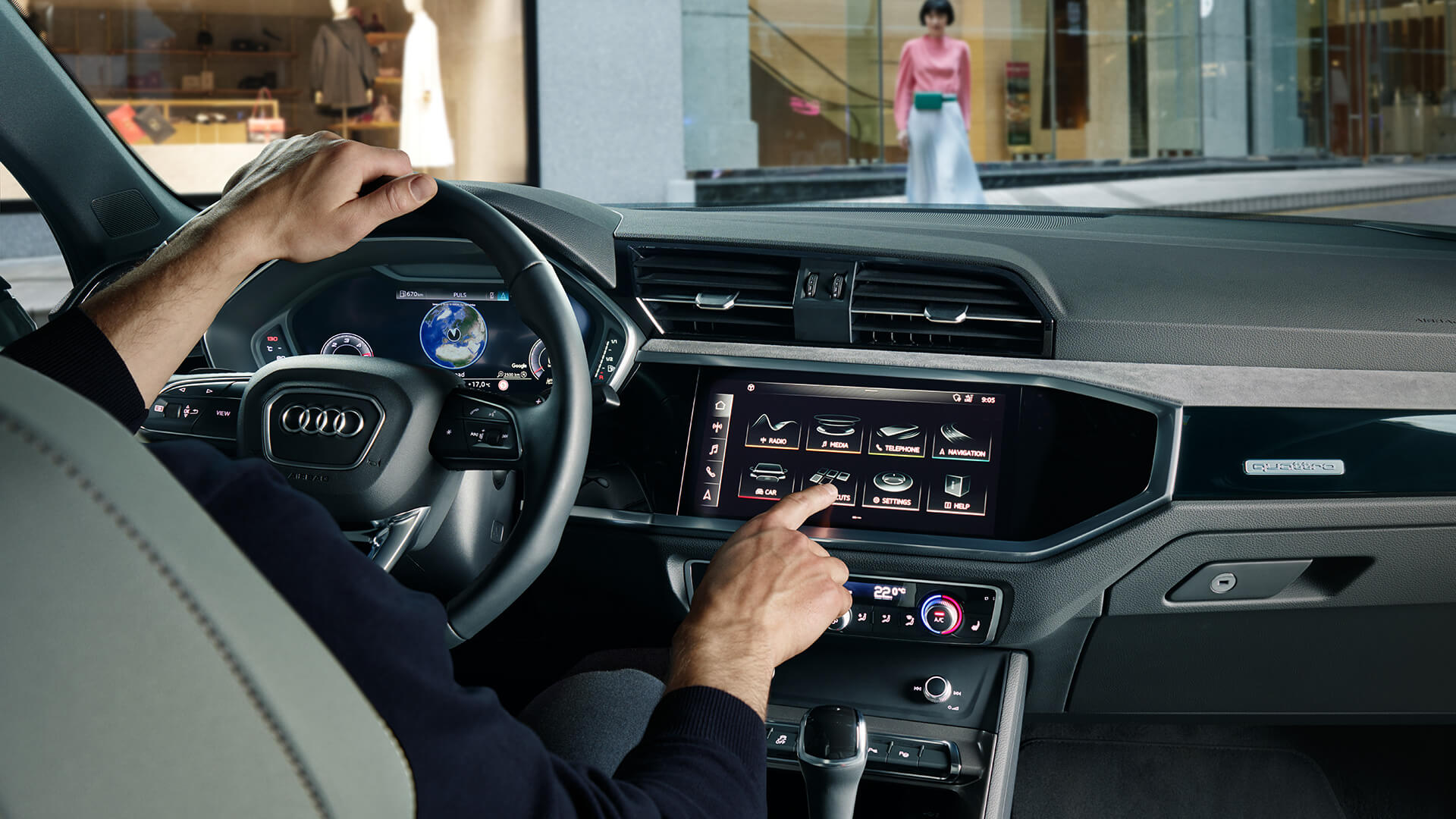 Une ligne de toit plongeante, une allure vigoureuse, une calandre Singleframe en nid d’abeilles et une ligne d’épaule basse... voici l’Audi Q3 Sportback, le premier SUV coupé compact Audi. Sous une carrosserie musclée, ses motorisations puissantes lui font gagner en dynamisme et en sportivité. A bord, l’expérience de conduite intègre des fonctionnalités plus intuitives que jamais et résolument « 2.0 ». Idéale pour le quotidien mais avec une touche de singularité, il est impossible pour vous de rester indifférent. Découvrez l’Audi Q3 Sportback.